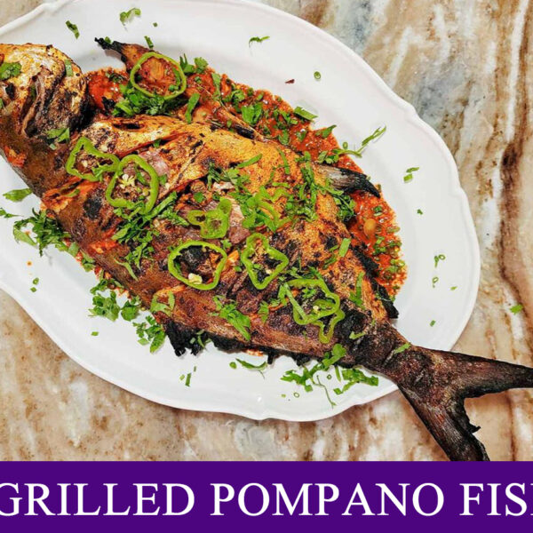 Baked Pompano fish with fried plantains